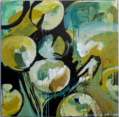 My lily pad series is my fondest creation to date. This collection of works embodies what I have always imagined my painting to be. Sophisticated; filled with rich colors. Whimsical; brush strokes that dance across the canvas. Versatile; pieces that can be enjoyed in any space.